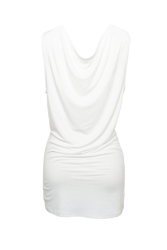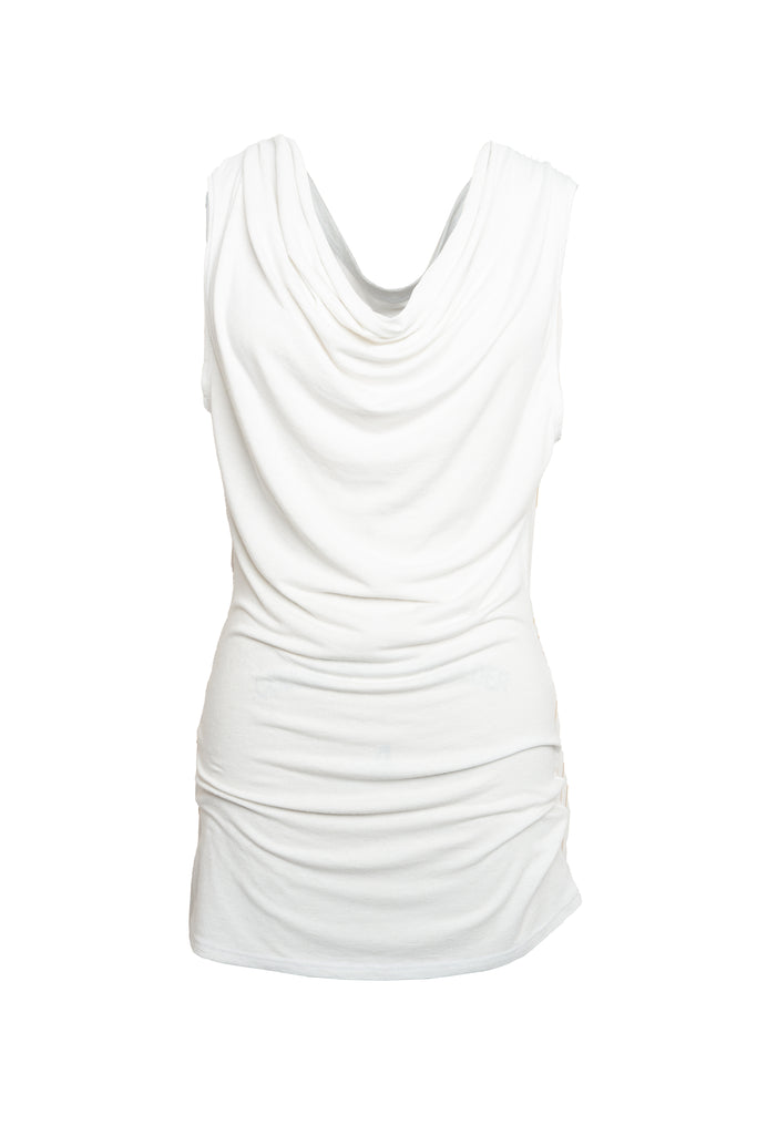Designed as a multiway top, its cowling neckline creates a versatile rippling effect made to drape as desired. Styled as a tank or dress, it can be worn backwards or forwards or off-shoulder -- it’s as many tops as you want it to be.